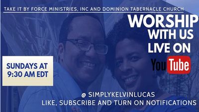 Join Pastor Kelvin, Lady Felicia and the Dominion Tabernacle Church family for a live inspirational message each Sunday at 9:30 am on facebook live https://www.facebook.com/takeitbyforceministries/